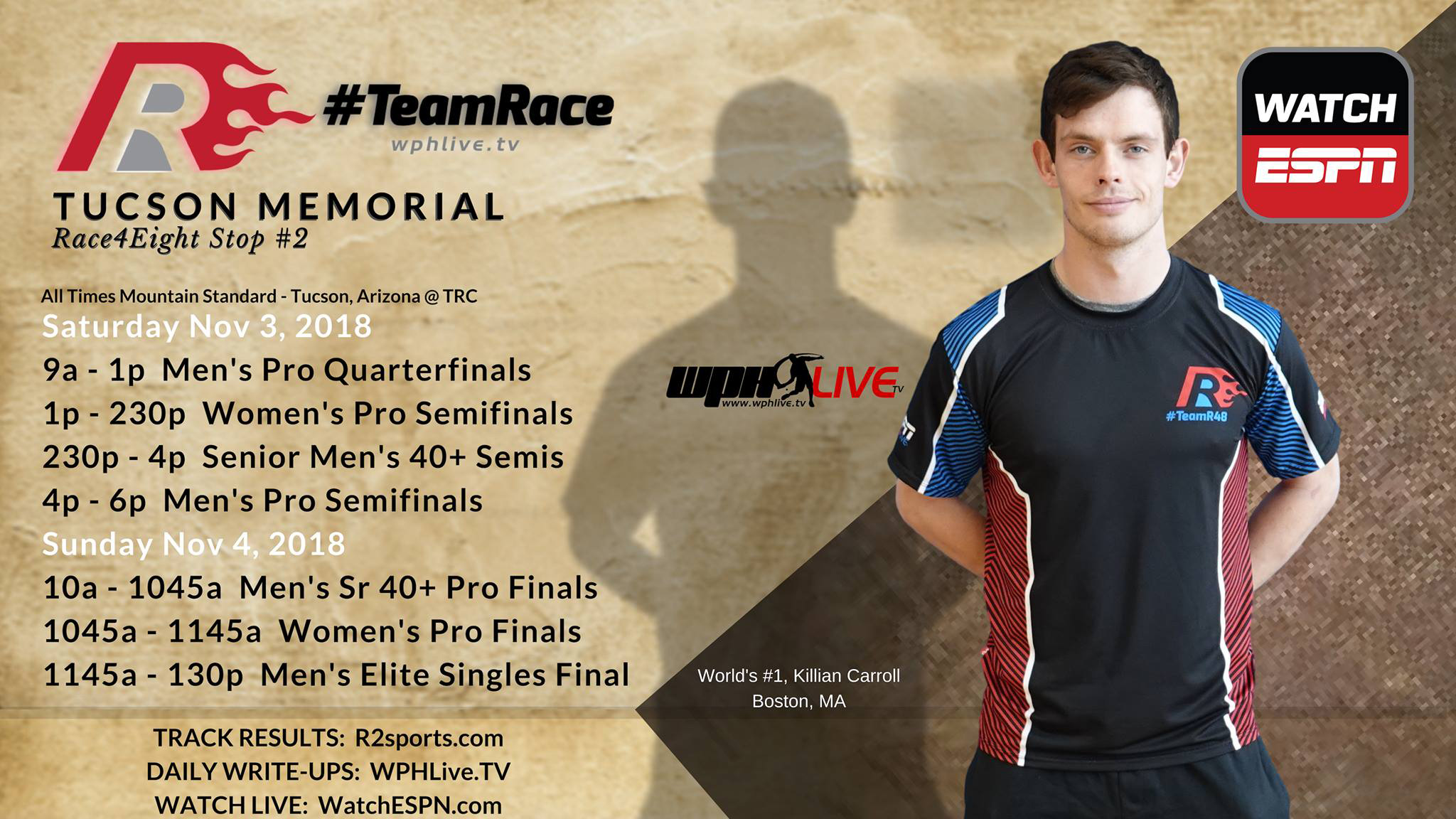 The Tucson Memorial and WPH R48Pro VIII Stop #2 boasts the top prize money purse of the year at $50K! While the exciting action of the WPH R48Pro Season 8 resumes at the Tucson Racquet Club, the event honors those in our community who have left us, but also celebrates their lives through the sport we love most.