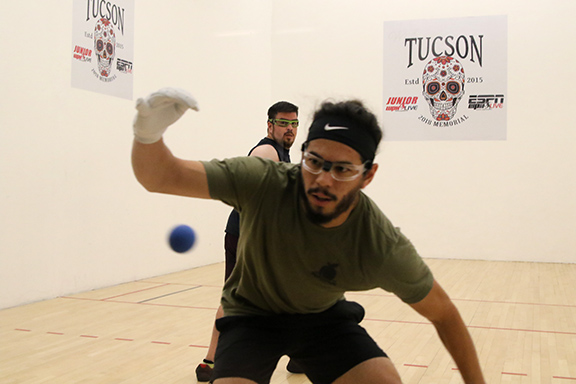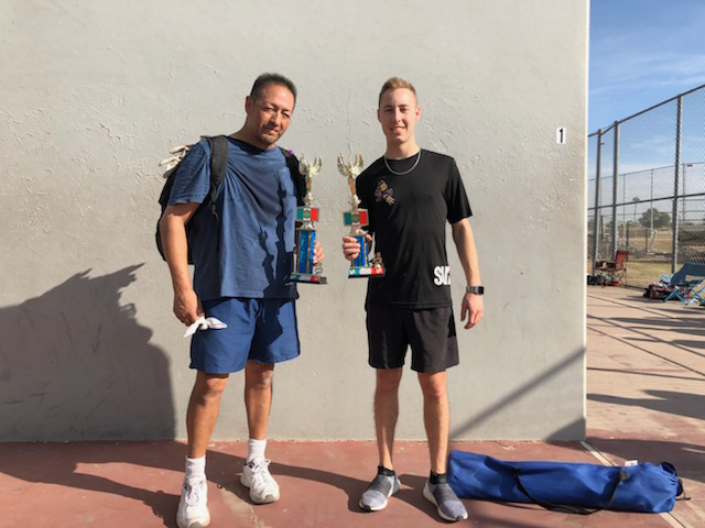 This is the second year for the tournament which raises money for the high school handball club. The tourney is planned and managed by the Arizona State University handball team. The Sun Devils are happy to show their commitment to community service and mentoring young student-athletes through this fun event. High school players from Carl Hayden and Camelback participated along with a passel of local adult players.