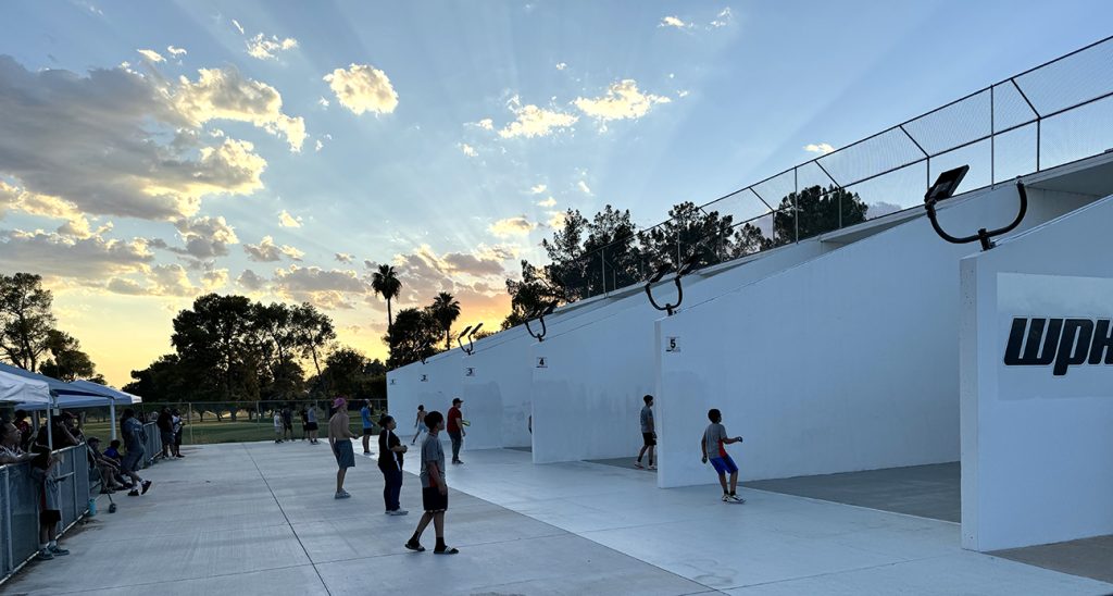 TUCSON, Ariz. — The 2024 Junior Three-Wall Nationals concluded in Tucson on Sunday morning. The weekend temps were soaring, and players battled the Arizona heat as well as their opponents on the scorched courts. Players were given a break during the most intense heat of the day as scheduled matches began in the early morning and ended before Noon. Play resumed after 5:00 p.m. utilizing the park’s recently installed lights. Referees gave players mandatory water breaks in addition to regular time outs.