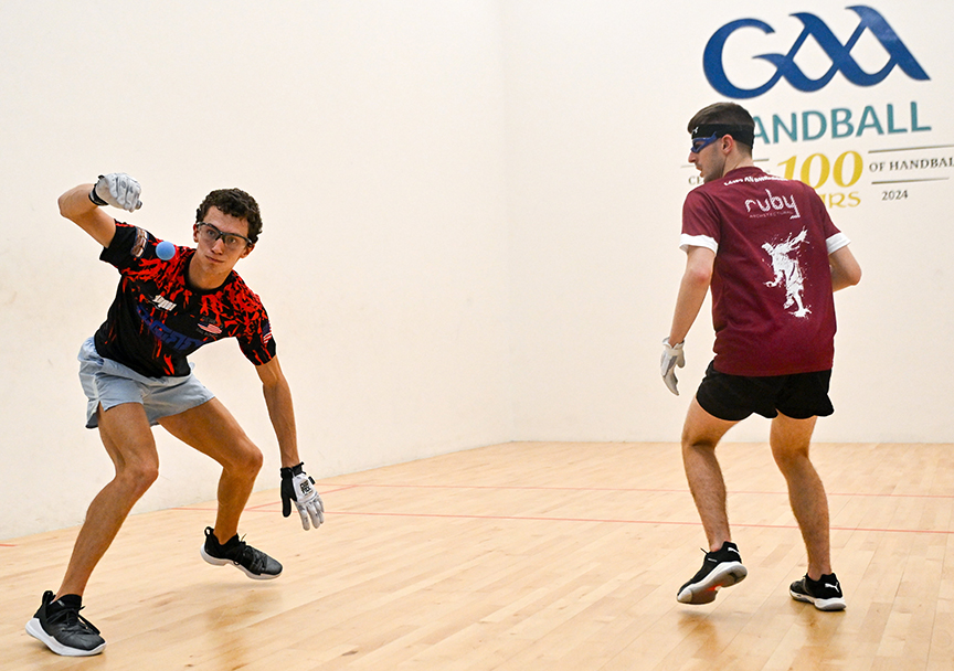 Nash has been in top form at these World Championships. He started strong in the quarterfinals against current USHA National champion Killian Carroll, winning the first game 15-1. The gallery and those watching the Sport TG4 YouTube live stream braced for a possible tiebreaker, knowing Carroll’s penchant for comebacks. Carroll did just that, winning the second game 15-9. Nash dictated the pace of the tiebreaker, which could have swung either way, serving out for an 11-8 victory.
