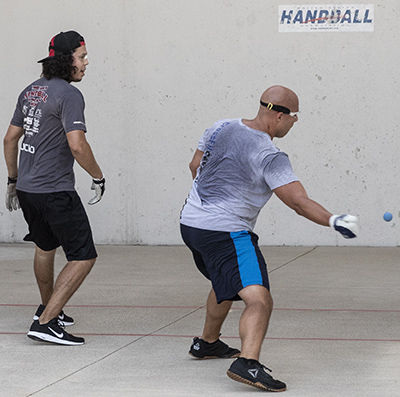 MAUMEE, Ohio — The second day of action at the 68th USHA Three-Wall Nationals brought more intense matches in singles divisions and first round play for doubles. In Men’s Open Singles quarterfinal action, Luis Cordova Jr. stopped Bill Mehilos in two games, 21-11, 21-15. Cordova plays defending champion Sean Lenning in tomorrow’s semifinal at 11 a.m.