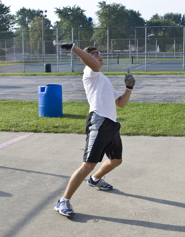 ![]() Placing a deep overhand serve near the side wall can cause the opponent headaches on the return. Photo by Keith Thode. |